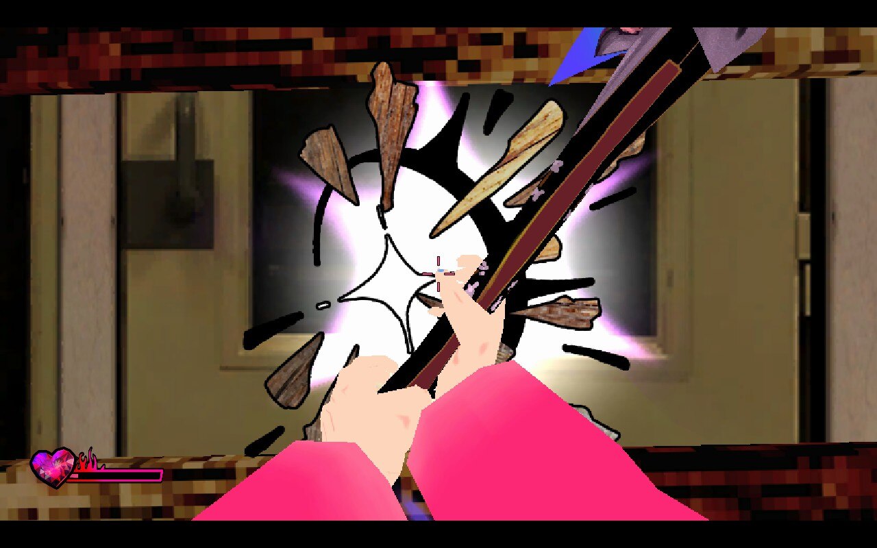 Sorry We’re Closed opens in a small London borough, the soundtrack echoing with dog barks between record scratches and Nujabes style funk beats. In classic hub world styling, you run between characters who will punctuate the beginning and end of the prologue and three days that make up the game. Michelle wears thrift shop chic adorned in a pink robe and a tshirt emblazoned with “fish fight.” A cool record store owner is chatting unknowingly with a demon online hoping to prove the existence of demons, while down the block a demon and diner owner carry out a messy relationship Michelle has the choice to affect. Once you are delivered to your first level, actions are satisfyingly crunchy like the crush of an axe against a barrel or crate or the reload of your pistol “The Hellhound” punctuated by an elevator ding and the satisfied growl of a dog. Like Killer7 and many games of the tank control era, shooting involves planting yourself and taking aim, having to swap between third and first person to clumsily run away from enemies if they get too close.